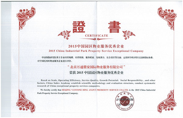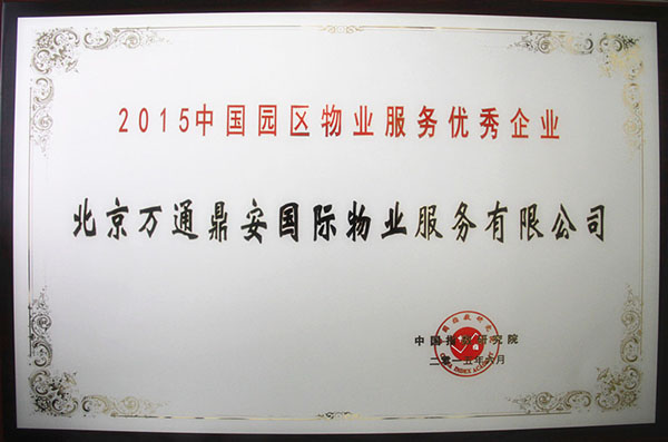 荣获2015中国园区物业服务优秀企业