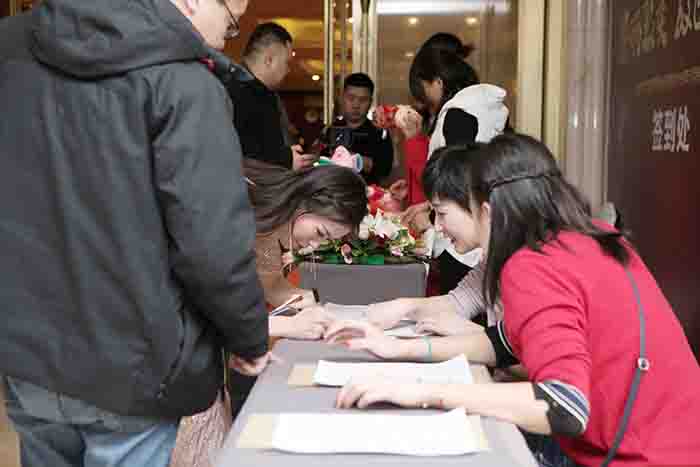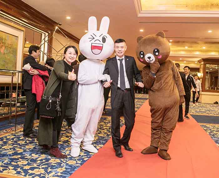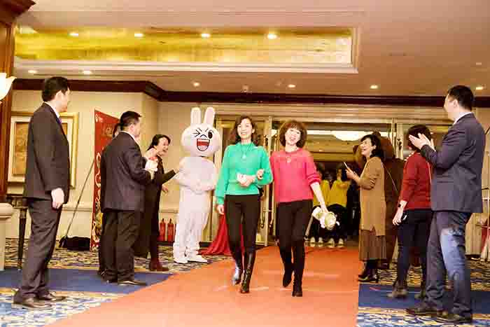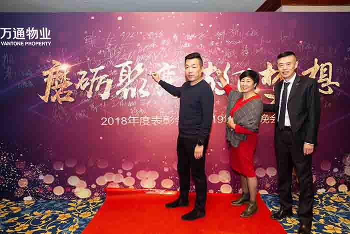“一元复始,万象更新”, 在这辞旧迎新的美好时刻,2019年1月18日,万通鼎安物业公司2018年度总结会、表彰会暨2019年迎新春晚会在国宾宾馆隆重举行。公司领导杨总、柏总、宋总及宋总监,公司各职能部门、全国各地的服务中心负责人,对2018年度工作进行了总结并对2019年工作做了展望。总结会上,大家群策群力,共同为万通物业的发展献计献策。晚上,公司各位领导、各职能部门及各服务中心员工代表共170人参加了迎新春晚会。大家纷纷走上红地毯,在红毯另一端的签到板上留下自己的“墨宝”。可爱的“网络红人”——布朗熊和可妮兔也来助兴,与大家一起庆贺新年的到来。