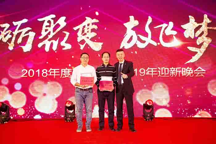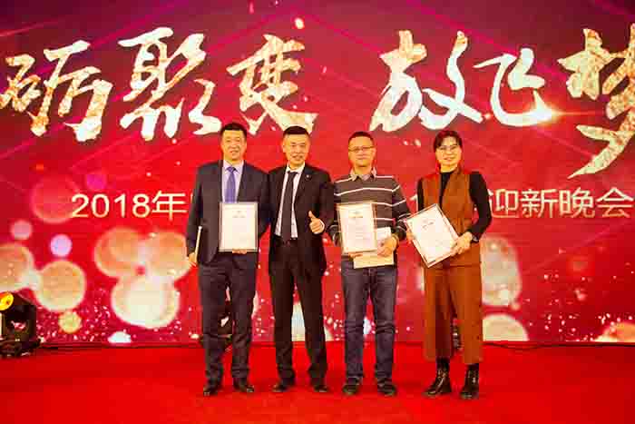 晚会上,大家聆听了柏总对2018年度工作的深度总结;对滴滴出行服务中心和成都联想服务中心两个“最佳团队奖”获得者、武汉联想刘丽等3位“金牌经理人奖”获得者,以及莱蒙湖王伶静等12位“优秀员工奖”获得者进行了表彰。在随后的迎新春晚会上,公司各职能部门和服务中心员工使出十八班武艺,尽展风采。热力四射的年轻人带来了透着青春气息的开场舞《抖音串烧》、肚皮舞《心舞》以及集体舞《隔壁的泰山》、《踩踩踩》,让观众的心也随着欢快的舞曲飞扬起来;逗趣的小品《白蛇传》和《神医看病》让大家捧腹大笑,欢乐开怀;还有精彩的戏曲表演《沙家浜选段—智斗》;以及悠扬的葫芦丝曲子《阿瓦人民唱新歌》、深情对唱的歌曲《凉凉》、象征公司员工风雨同舟的歌曲《众人划桨开大船》、充满阳刚之气的《你》,以及被观众评为“超酷、超炫”的双截棍表演,都令大家享受了一场视听盛宴。在这场盛宴的进行中,公司还为员工们准备了丰厚的抽奖奖品和塞满人民币、美金的红包,让在场员工直呼惊喜、过瘾。另外,年会上还有一场重头戏——公司将工作十年以上的部分老员工请到了晚会现场,为他们颁发“忠诚奉献奖”,表彰他们10年、20年如一日忠诚服务公司的奉献精神,并由公司各位领导亲手为他们佩戴24k金打造的金质司徽,让各位老员工感动十足。对于未能到场的获奖员工,公司届时会另择时间召开专项表彰会,力求让所有人感受到万通物业与大家永远心意相通。
